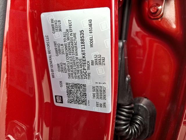 "This New 2026 Chevrolet Colorado 4WD Trail Boss, is Radiant Red Tintcoat in color with an Jet Black interior. Stock Number T1188535. You can connect with us by calling 9375690527. Important Package and Feature Information Preferred Equipment Group 0TRChevy Safety AssistBronze Accent Package ($1,225 value)Bronze Bodyside DecalBronze NameplatesHood Decal PackageDoor Sill PlatesTech Bronze Recovery Hooks Safety and Security Forward collision mitigation - Forward thinking. You look away for just a second and suddenly the vehicle in front of you has stopped. That's when the forward collision mitigation system comes to life. When it senses an impending impact, it will activate a combination of features to help prevent or reduce the severity of an accident. Forward collision mitigation is always looking ahead. Pedestrian impact prevention - An extra step toward safety. Pedestrians don't always stop, look, and listen, but with Pedestrian Impact Prevention, your vehicle is equipped to better see them and avoid them. This system constantly monitors the road ahead to identify and track pedestrians. It projects that image to an interior display screen, AND should an impact become likely, Pedestrian impact prevention takes steps to avoid a collision. Rear camera - Watching your back! The rear camera helps you see obstacles and hazards you otherwise couldn't by showing enhanced images of what is behind you. The rear camera is an extra set of eyes that's both convenient and safe.Technology and Telematics Apple CarPlay/Android Auto smart device wireless mirroring Mobile hotspot - WiFi on the fly. Connect your devices to the Internet through your vehicles private mobile hotspot and take the internet wherever your journey takes you, without eating up your data allowance. Find the hotspot with mobile hotspot. EMISSIONS, FEDERAL REQUIREMENTS, ENGINE, TURBOMAX, TRANSMISSION, 8-SPEED AUTOMATIC, REAR AXLE, 3.42 RATIO, WHEELS, 18"" X 8.5"" (45.7 CM X 21.6 CM), HIGH GLOSS BLACK ALUMINUM, TIRES, 265/65R18 ALL-TERRAIN, BLACKWALL, 32"" OD, TIRE, SPARE 265/70R17SL ALL-SEASON, BLACKWALL, RADIANT RED TINTCOAT, SEATS, FRONT BUCKET, JET BLACK, CLOTH SEAT TRIM, 11.3"" DIAGONAL ADVANCED COLOR LCD DISPLAY WITH GOOGLE BUILT-IN, LPO, BRONZE ACCENT PACKAGE, LPO, TECH BRONZE RECOVERY HOOKS, BEDLINER, SPRAY-ON, BLACK WITH CHEVROLET LOGO, LPO, HOOD DECAL PACKAGE, LPO, BODYSIDE DECAL BRONZE, LPO, BRONZE NAMEPLATES, LPO, DOOR SILL PLATES, LPO, REMOTE START KIT At SVG Chevrolet of Greenville, were here to Serve you! Our staff is 100% dedicated to customer satisfaction and we understand that you need clear, transparent information throughout the car buying process. With our live market pricing philosophy, we offer the right cars at the right price, and the transparency to back it up! FINANCING OPTIONS: Take advantage of our attractive low-rate financing options. Our access to various Credit Unions and National Banks can provide financing for most credit levels. We can tailor a finance package to fit your needs. To get started, complete our secure online credit application. All pricing and details provided are believed to be accurate, but we do not warrant or guarantee such accuracy. The prices shown above may vary from region to region, as will incentives, and are subject to change. New vehicles offered may be eligible for manufacturer incentives which may change at any time and are subject to incentive qualification criteria and requirements, and which may be contingent upon manufacturer finance company approval. Manufacturer incentive data and vehicle features information is provided by third parties and believed to be accurate as of the time of publication. Vehicle information is based upon standard equipment and may vary from vehicle to vehicle. Please contact the dealership."