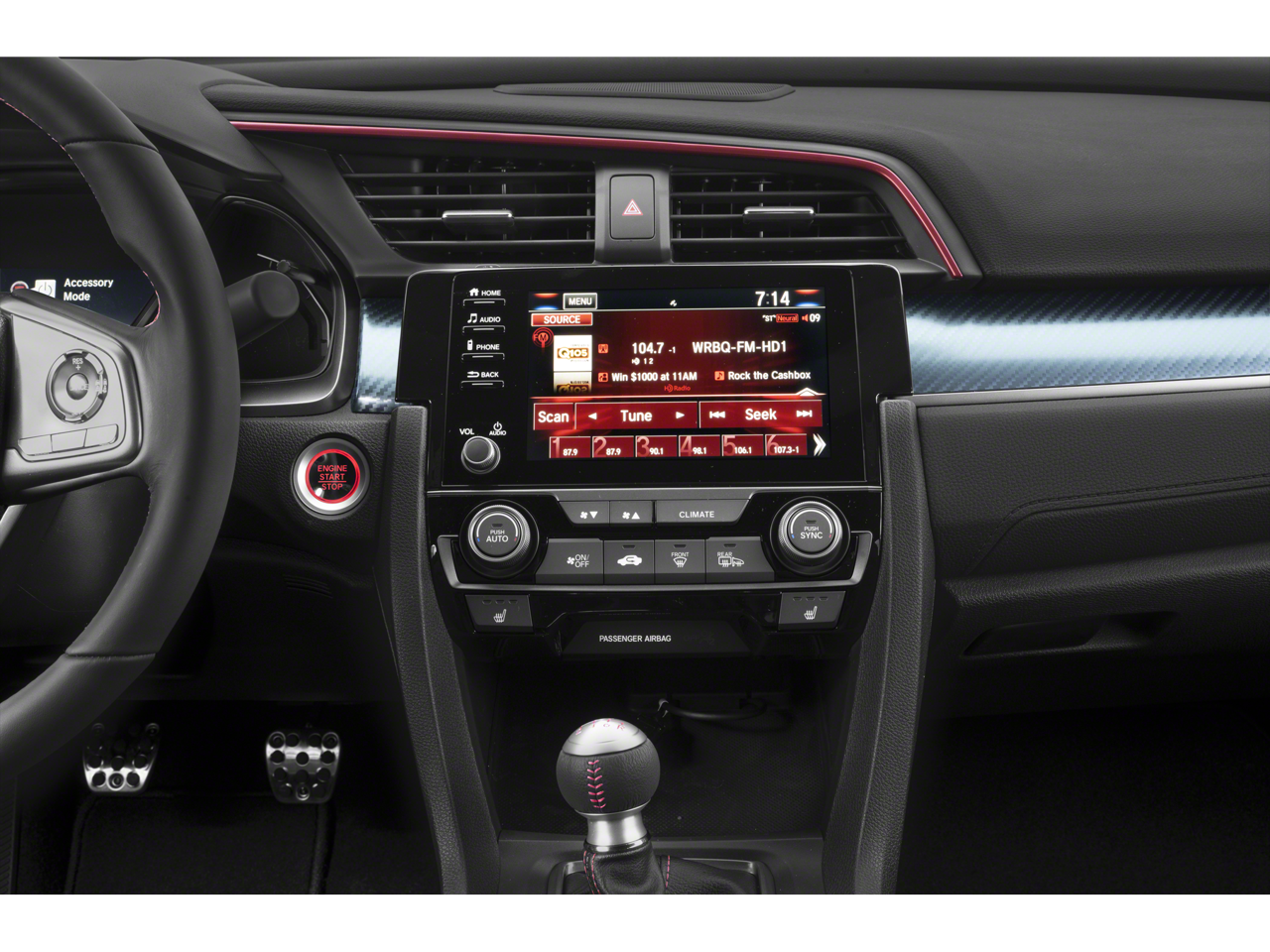 - Radio: 450-Watt Premium Audio System w/10 Speakers -inc: subwoofer, 7-inch display audio w/high-resolution electrostatic touch-screen, knob and hard keys for primary controls and customizable feature settings, HondaLink, Apple CarPlay integration, Android Auto integration, SiriusXM, HD Radio, Bluetooth® HandsFreeLink, Bluetooth® streaming audio, SMS text message function, Radio Data System (RDS), Speed-Sensitive Volume Compensation (SVC), 1.0-amp USB audio interface port in center console, 1.5-amp USB smartphone/audio interface port in front console, illuminated steering wheel-mounted controls and fin-type roof-mounted antenna