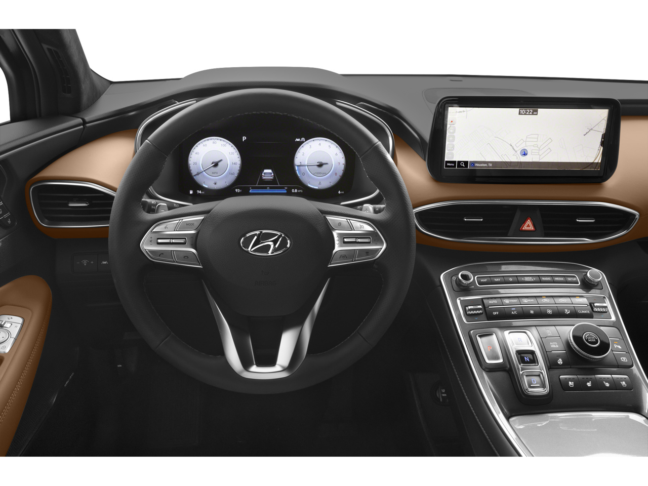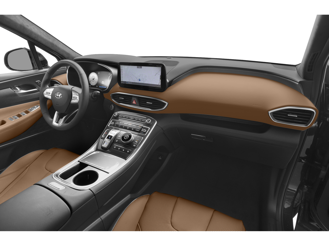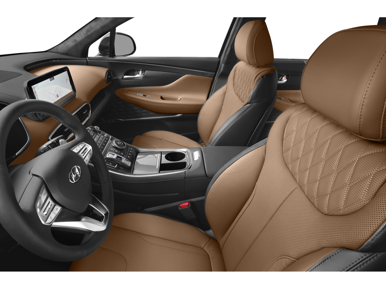 This Santa Fe Calligraphy comes equipped with a state-of-the-art 10.25'' touchscreen display powered by Harman Kardon premium audio with 12 speakers. Enjoy seamless connectivity with wireless Apple CarPlay and Android Auto integration, allowing you to access your favorite apps and music effortlessly. The head-up display projects essential information directly onto the windshield, keeping your eyes on the road.